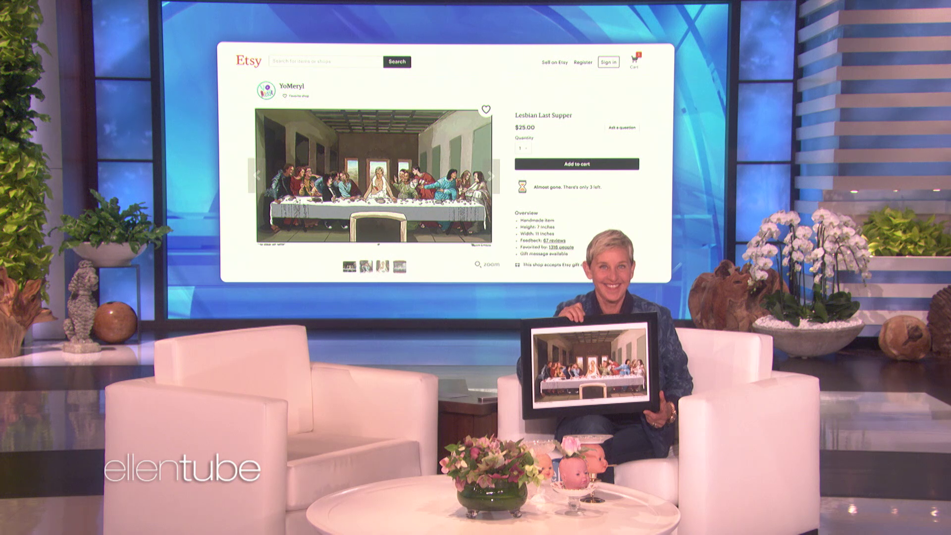 Bronwyn Lundberg’s Lesbian Last Supper and YoMeryl’s Etsy on “The Ellen Show.”
